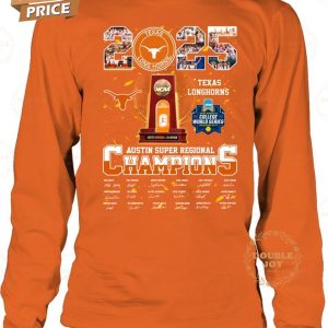 2025 Texas Longhorns Austin Super Regional Champions T-Shirt Information:
