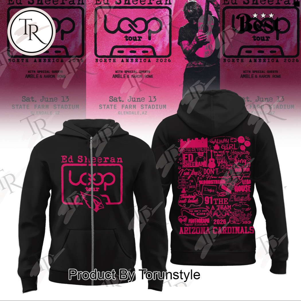 Arizona Cardinals X Ed Sheeran Loop Tour 2026 Black Hoodie, Zipper Hoodie, Fleece Hoodie, Long Sleeve Shirt, T-Shirt