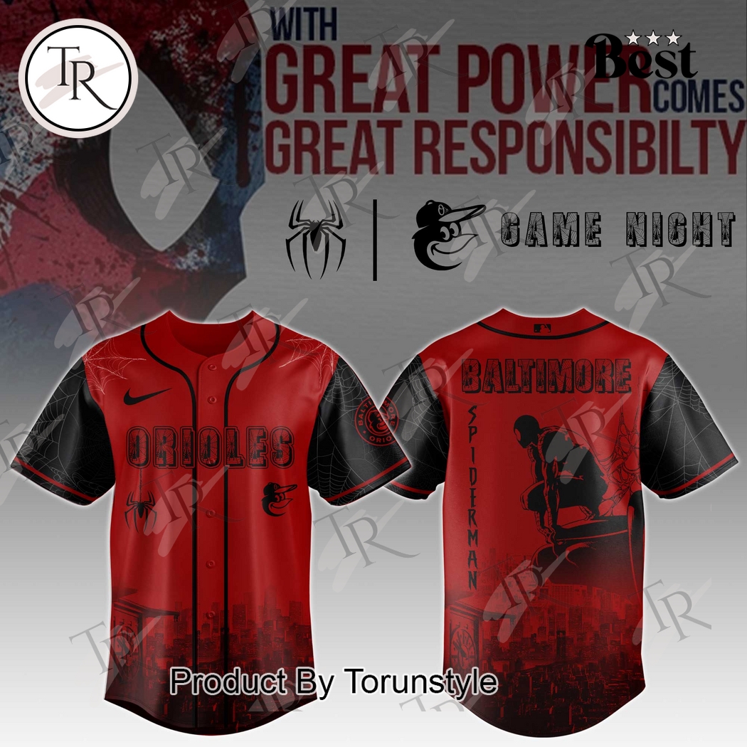 ,Baltimore Orioles X Spiderman With Great Power Comes Great Responsibilty Game Night 2025 Baseball Jersey,Baltimore Orioles X Spiderman With Great Power Comes Great Responsibilty Game Night 2025 Baseball Jersey