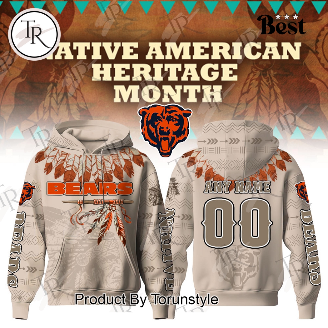Chicago Bears X Native American Heritage Month Custom Name And Number 2025 Hoodie, Zipper Hoodie, Fleece Hoodie, Long Sleeve Shirt, T-Shirt