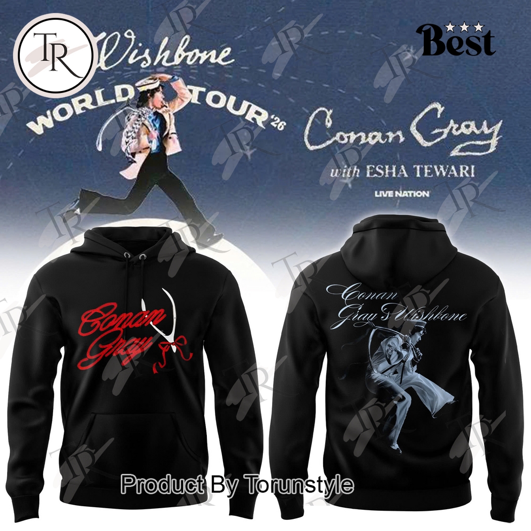 The aesthetic appeal of this hoodie is undeniable, centered around its bold and clear graphics. Prominently displayed across the chest is the “Conan Gray Wishbone World Tour’26” insignia, executed with high-quality screen printing that resists cracking and fading even after numerous washes. The specific typography and artwork for the “Wishbone” motif are thoughtfully integrated, reflecting the tour’s unique visual identity and resonating deeply with fans of Conan’s distinctive artistic style. The deep, rich black color of the hoodie provides a sophisticated and versatile backdrop, allowing the tour branding to pop without being overly garish. This isn’t just a generic band hoodie; it’s a carefully curated piece of merchandise designed to be a stylish addition to any wardrobe.