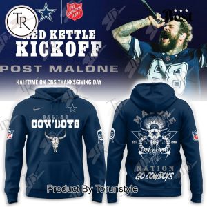 Potential customers considering this hoodie will find it addresses multiple core needs. For the dedicated Cowboys fan, it’s a fresh, modern way to express team allegiance, offering a unique twist on traditional fan gear that stands out in a sea of generic jerseys. For enthusiasts of Post Malone, it’s a stylish piece that integrates their musical taste with an iconic sports franchise, reflecting a multifaceted passion. The “Red Kettle Kickoff 2025” branding imbues it with a sense of exclusivity and historical significance; it’s not just a hoodie, but a commemorative piece tied to a specific event, making it highly collectible for fans who appreciate limited-edition merchandise. Furthermore, a portion of the proceeds from each sale directly benefits the Salvation Army’s vital Red Kettle campaign, allowing wearers to actively contribute to a noble cause while investing in premium apparel. This charitable component adds significant value, transforming a fashion purchase into an act of community support. It meets the desire for comfort through its superior fabric, the need for style through its innovative design fusion, the demand for authenticity through its official collaboration, and the longing for purpose through its charitable ties. Owning this hoodie signifies participation in a unique cultural moment, a blend of sports, music, and philanthropy, making it an indispensable addition to any discerning fan’s wardrobe.