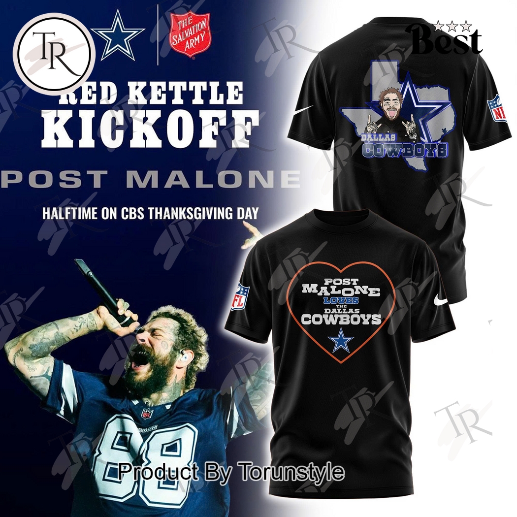 The Dallas Cowboys X Post Malone Red Kettle Kickoff Halftime On CBS 2025 Hoodie stands as a truly distinctive garment, fusing the iconic energy of America’s Team with the genre-bending artistry of one of music’s biggest stars, all while commemorating a significant broadcast charity event. This isn’t merely another piece of fan merchandise; it represents a cultural intersection, a tangible memento from a highly anticipated moment in sports and entertainment. The primary draw lies in its exclusive design, a careful synergy that captures the spirit of both the Dallas Cowboys and Post Malone, without overshadowing the commemorative aspect of the 2025 Red Kettle Kickoff Halftime show on CBS. Imagine a design where the legendary Cowboys star is reinterpreted with Post Malone’s signature aesthetic – perhaps a distressed finish, a unique typographic treatment, or integrated subtle motifs reminiscent of his album art or personal style, creating an edgy yet reverent homage. The color palette likely grounds itself in the classic Cowboys navy, silver, and white, but injects unexpected pops of color, possibly a rich red to signify the Red Kettle charity, or even a muted tone reflecting Post Malone’s often understated yet impactful visual brand. Detailed embroidery or high-quality screen printing ensures the “Red Kettle Kickoff Halftime On CBS 2025” branding is prominent yet integrated, making the hoodie an undeniable piece of event history that will only grow in significance as the event approaches and passes.