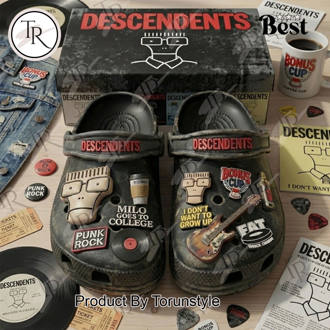Aesthetically, the Descendents 2026 Crocs are a visual manifesto, designed with direct input from the band to ensure authenticity. The classic Crocs silhouette is transformed with an exclusive “Milo Goes to College” album art motif, subtly embossed and printed across the vamp and sides, integrating key elements like Milo himself and the iconic coffee cup. The color palette draws directly from the band’s aesthetic – predominantly in a matte black or deep navy, accented with pops of vibrant red or bright white that highlight the Descendents’ distinctive “ALL” logo, which is tastefully integrated into the pivoting heel strap and even subtly molded into some of the ventilation ports. These signature ventilation ports, beyond their functional purpose of enhancing breathability and shedding water, are creatively shaped like tiny coffee beans or stylized versions of the “ALL” emblem, adding an additional layer of band-specific detail that fans will undoubtedly appreciate. The pivoting heel strap itself is reinforced with a durable, yet flexible material and features custom-molded buckles bearing the Descendents logotype, ensuring a secure fit whether worn in sport mode or as a casual slide.