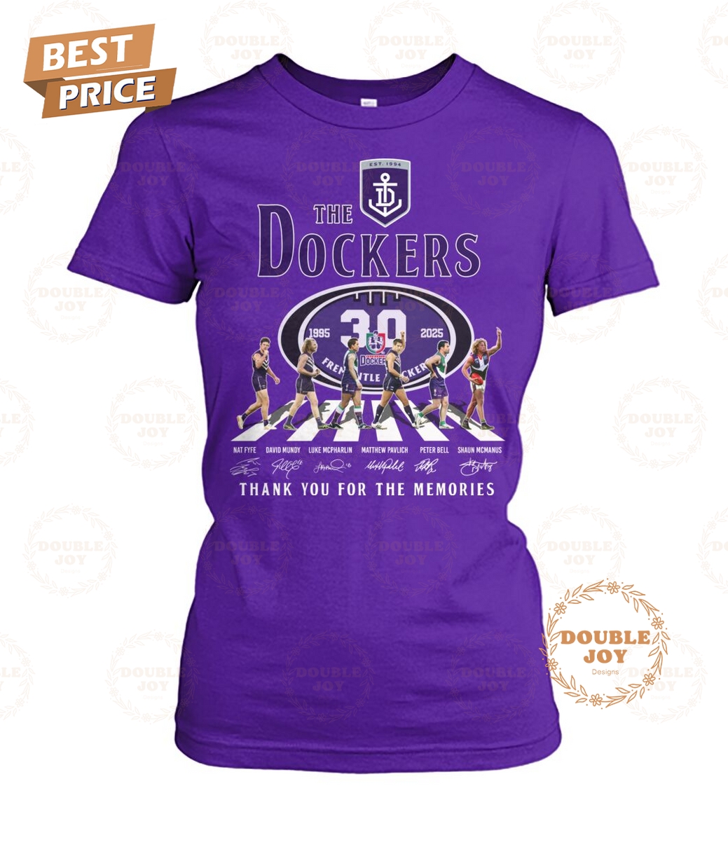 Fremantle Dockers 30th 1995-2025 Thank You For The Memories T-Shirt Information: