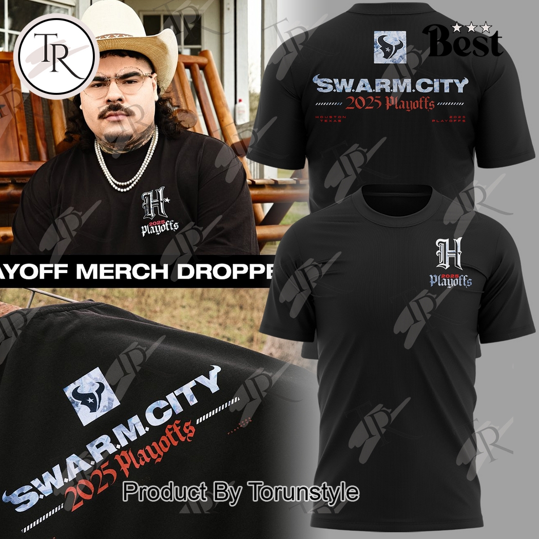 At the heart of its design lies the powerful “S.W.A.R.M City” motif, a concept that encapsulates the unified, overwhelming force of the Houston Texans fan base. This isn’t merely text; it’s a carefully rendered graphic, perhaps featuring a dynamic, aggressive typeface that suggests movement and collective energy, possibly integrated with subtle, almost hive-like textural elements that reinforce the idea of a cohesive unit. This visual narrative empowers the wearer, making them feel like an integral part of the team’s formidable home-field advantage. Directly alongside this, the “2025 Playoffs” inscription serves as a potent reminder of the team’s upward trajectory and the shared dream of postseason glory. It instills a forward-looking excitement, allowing fans to vocally express their belief and eagerness for what lies ahead.