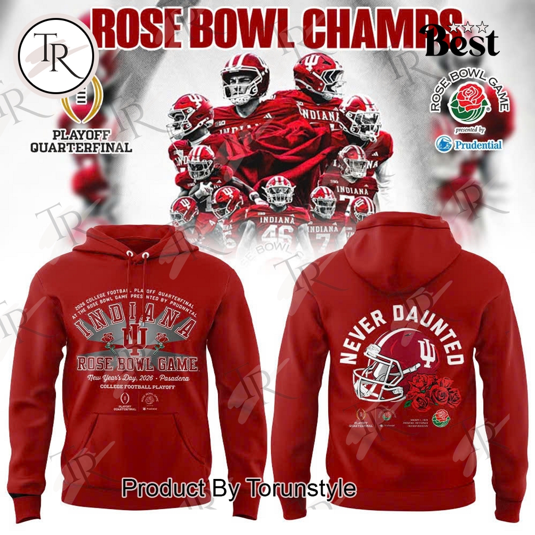 Indiana Hoosiers 2026 Rose Bowl Champs “Never Daunted” Hoodie, Zipper Hoodie, Fleece Hoodie, Long Sleeve Shirt, T-Shirt