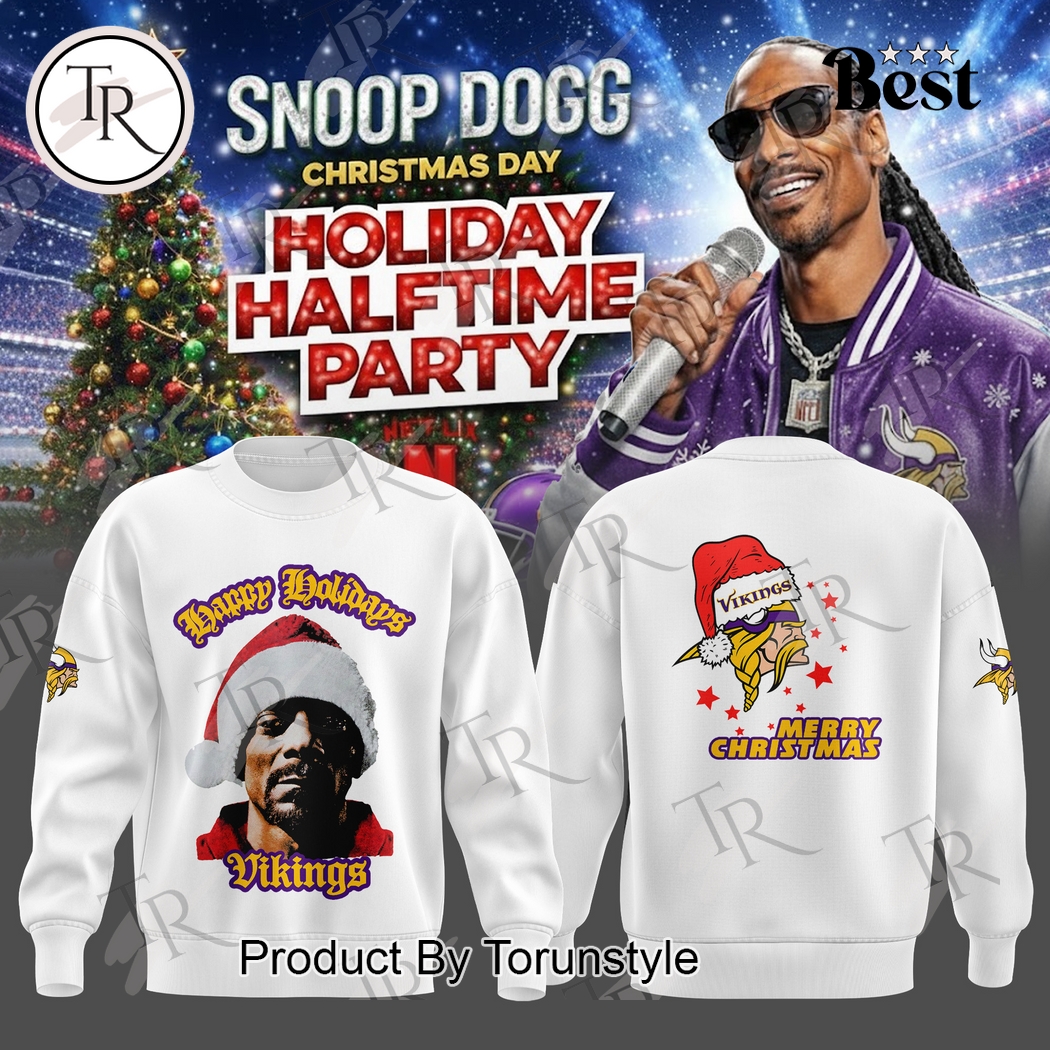 The “Holiday Halftime Party 2025” designation is elegantly incorporated, possibly as a stylized wordmark beneath the main graphic or subtly embroidered on the sleeve, signifying a specific, forward-looking event and imbuing the hoodie with an exclusive, commemorative quality that appeals to collectors and forward-thinking fans alike, marking it as a piece of future history and a keepsake from an anticipated celebration. Attention to detail extends to its construction, featuring a double-lined hood with adjustable, color-matched drawstrings, often tipped with branded metal aglets for a premium feel, providing extra warmth and a customizable fit, while the ribbed cuffs and hem offer a secure, comfortable fit that retains its elasticity. This hoodie fulfills the needs of a diverse audience: the die-hard Minnesota Vikings fan seeking unique memorabilia beyond standard team gear; the loyal Snoop Dogg aficionado desiring a fresh, stylish way to represent their favorite artist; and the fashion-conscious individual who appreciates high-quality streetwear with a compelling narrative and an unexpected collaboration.
