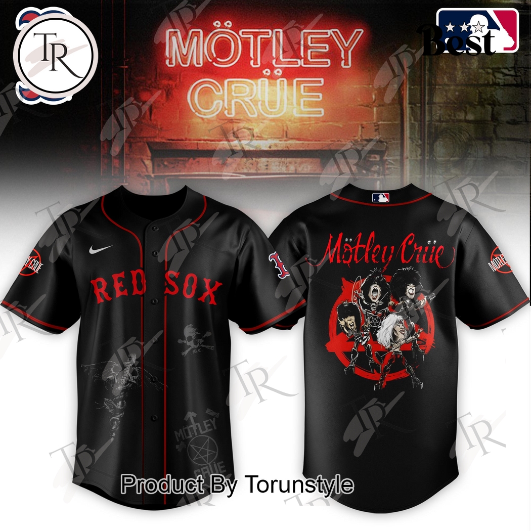 Turning to the reverse, the jersey truly embraces its rock-star alter ego. The traditional numbering and lettering, applied with premium tackle twill for durability and an authentic feel, could bear the names of the band’s legendary members – Vince Neil, Nikki Sixx, Mick Mars, and Tommy Lee – each name rendered in a font subtly echoing Mötley Crüe album cover typography, perhaps with a metallic silver thread woven into the red or navy lettering for a subtle stage light sheen. Each number, perhaps a significant year for the band or the Red Sox, is framed to suggest a powerful, concert-ready presence. On the sleeves, collectors will discover special edition patches: one proudly displays the classic Red Sox sock logo, while the other features a bespoke Mötley Crüe emblem – perhaps their iconic skull and crossbones motif cleverly sporting a miniature Red Sox cap – solidifying the collaboration’s unique identity. A special “2025” commemorative patch could also be present, denoting this limited-edition release year, further enhancing its collectibility. The material itself is paramount for a jersey designed for both performance and display. Constructed from a high-quality, breathable, moisture-wicking polyester blend, this jersey is built for comfort whether sweating at a summer concert or cheering from the stands on a hot day at Fenway Park. Its athletic cut ensures a comfortable, non-restrictive fit, while reinforced stitching throughout guarantees exceptional durability, allowing this unique piece to withstand the rigors of enthusiastic wear and repeated washing without compromising its intricate design or vibrant colors. This commitment to quality ensures the jersey isn’t just a novelty, but a premium garment engineered for longevity. For the potential customer, this jersey addresses multiple desires. The ardent fan of both Mötley Crüe and the Boston Red Sox finally has a definitive, high-quality garment that perfectly encapsulates their diverse passions. It provides a tangible, authentic way to express identity, standing out in a sea of generic fan apparel. Collectors will recognize its immediate value as a rare, limited-edition crossover item bridging two distinct cultural phenomena, promising to become a cherished centerpiece in any memorabilia collection. Furthermore, its striking design and superior construction make it an exceptional gift for any individual who appreciates unique, high-quality apparel that tells a story. This jersey is more than just clothing; it’s a statement, a conversation starter, and a testament to the enduring power of music and sport to inspire and unite. It fulfills the need for self-expression, superior craftsmanship, and the thrill of owning a truly unique piece of pop culture history.