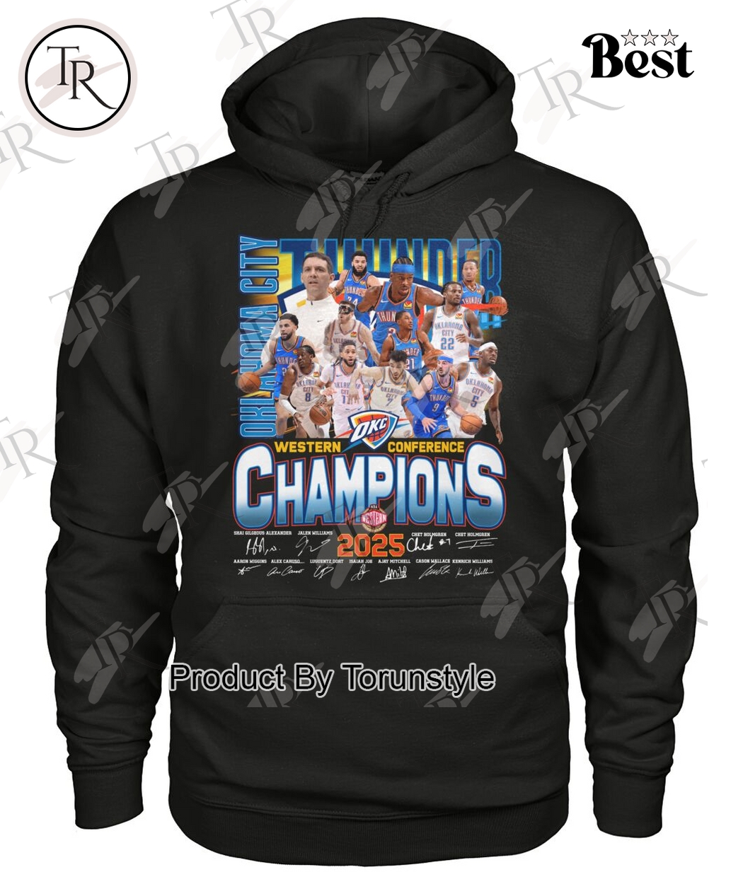 Oklahoma City Thunder Western Conference Champions 2025 Limited Edition T-Shirt, Hoodie, Ladies, Long Sleeve, Sweatshirt, Mug, Tank Top
