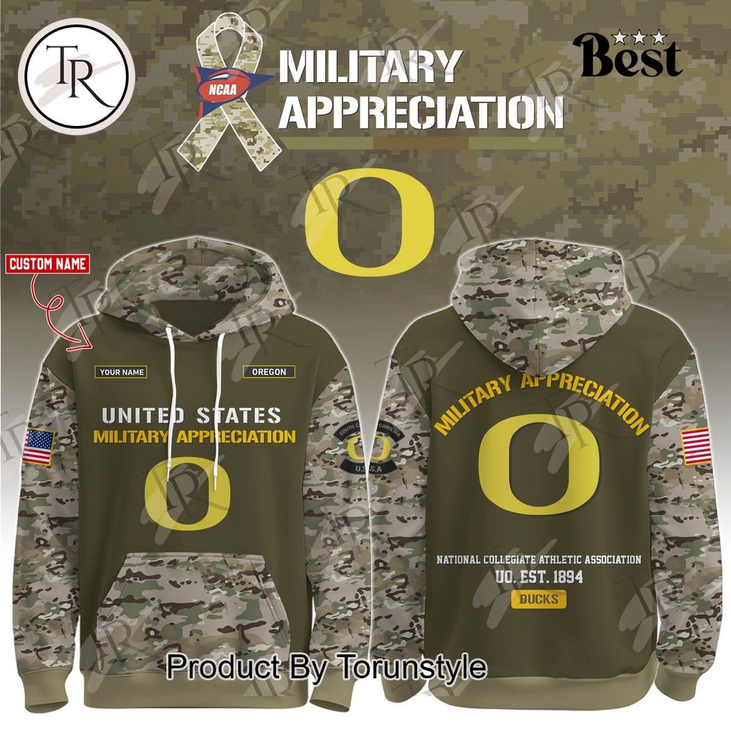 Oregon Ducks X Military Appreciation Custom Name 2025 Hoodie Information: