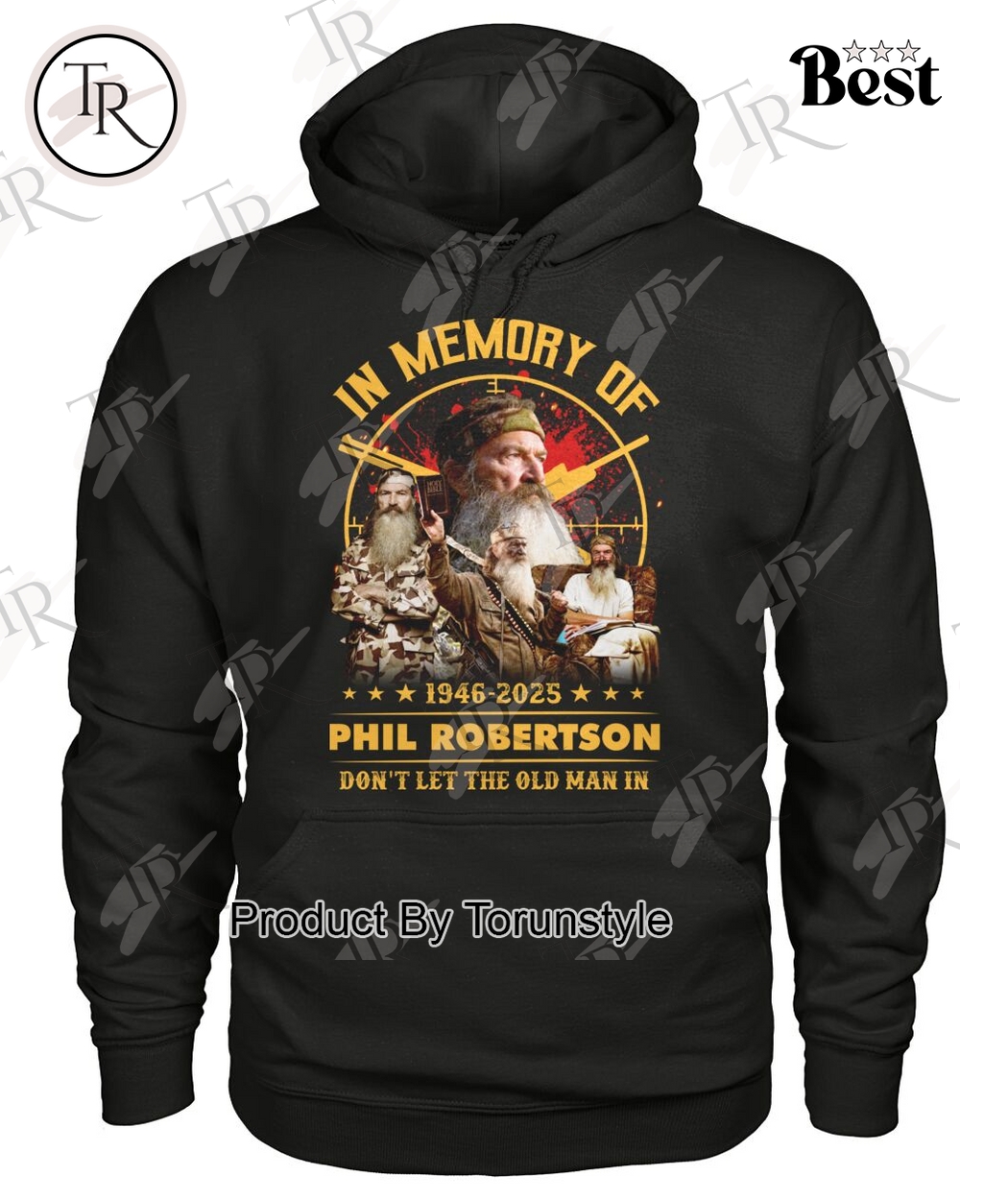 Phil Robertson In Memory Of 1946-2025 Don’t Let The Old Man In T-Shirt, Hoodie, Ladies, Long Sleeve, Sweatshirt, Mug, Tank Top