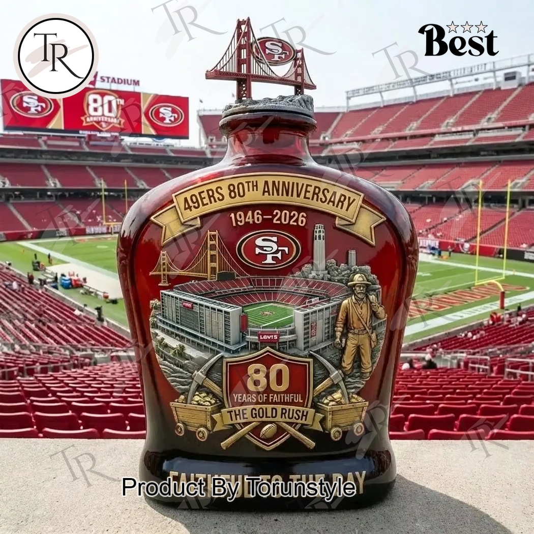 Introduction to San Francisco 49ers 80th Anniversary 1946-2026 Whiskey Bottle.