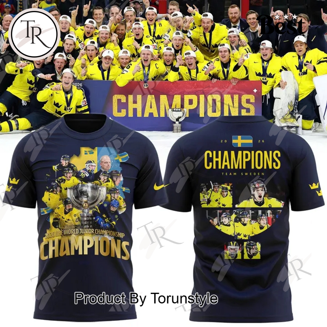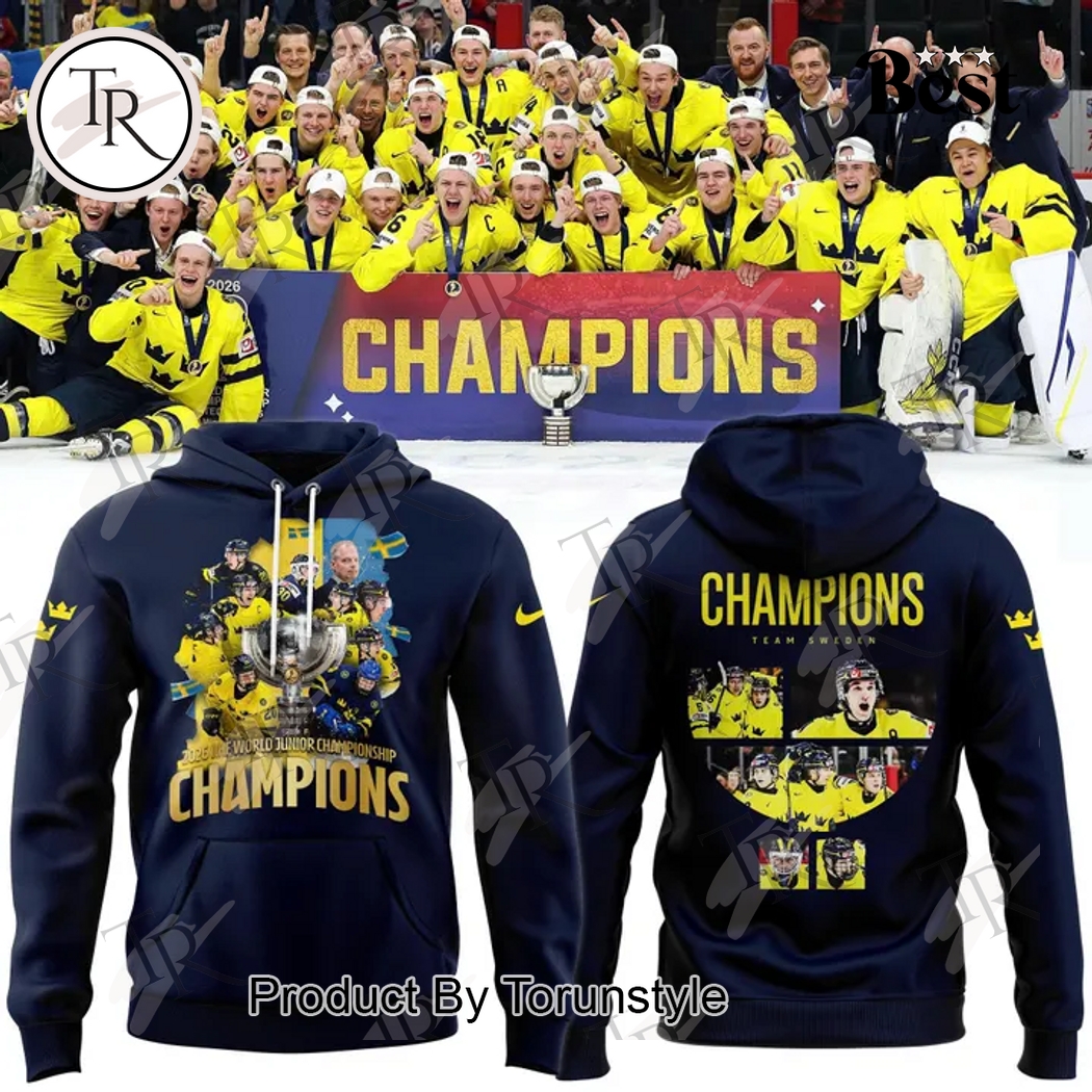 ,Sweden National Ice Hockey Team IIHF World Junior Champions 2026 Hoodie - Blue