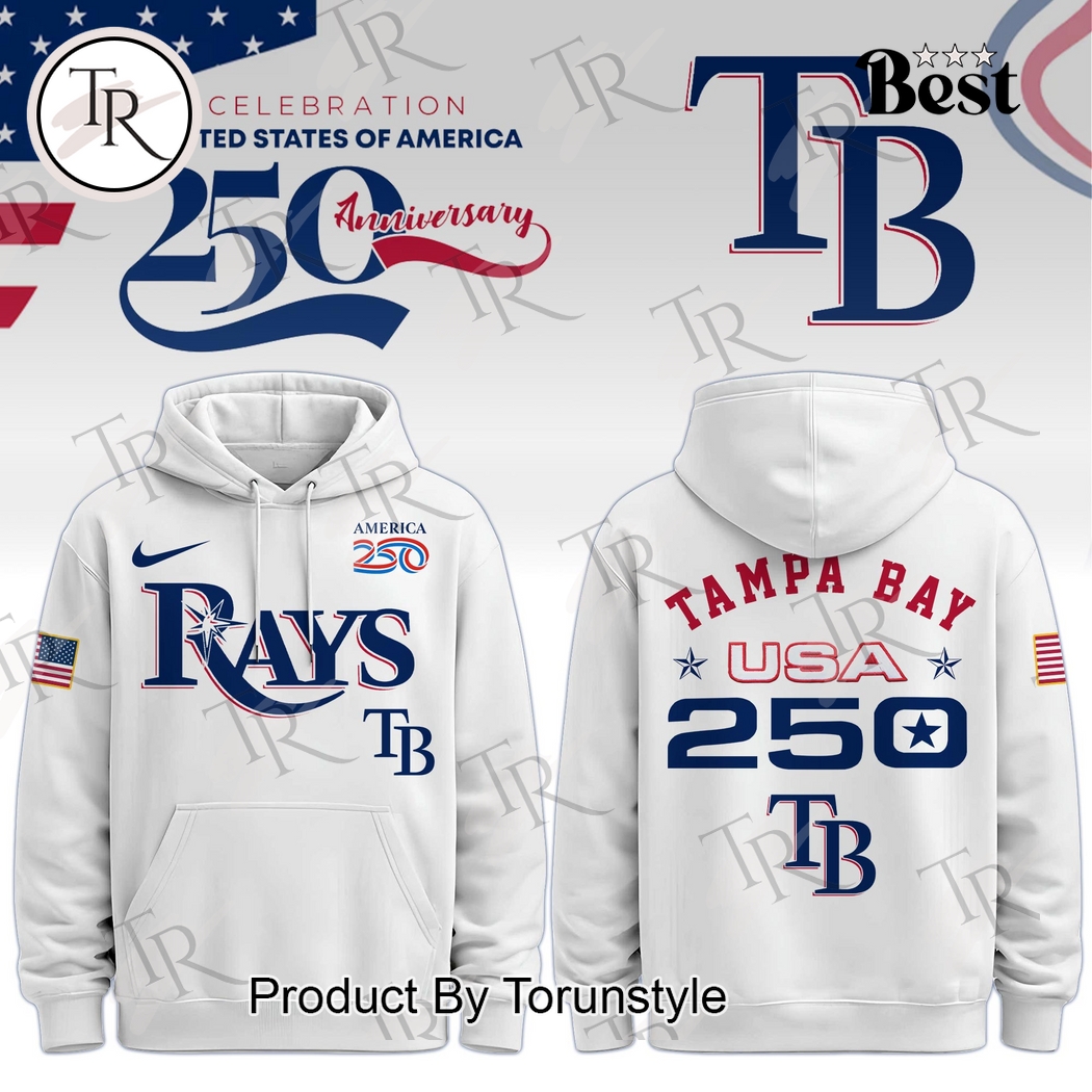 This distinctive Tampa Bay Rays United States Of America 250 Anniversary Hoodie offers fans a truly unique garment, meticulously designed to honor both dedicated team allegiance and a monumental national milestone. Far more than a standard piece of fan apparel, this hoodie serves as a wearable commemoration, fusing the iconic imagery of the Tampa Bay Rays with the profound symbolism of the United States of America’s 250th anniversary. At its core, the design features a compelling integration of the familiar Tampa Bay Rays logo – perhaps in a specially adapted patriotic color scheme or juxtaposed against red, white, and blue elements – alongside prominent “USA 250” anniversary branding. This fusion might manifest as a bold chest graphic where the Rays emblem is encircled by stars and stripes, or a sleeve patch proudly proclaiming the “250th Anniversary” with an American flag motif, ensuring an unmistakable statement of dual pride. The visual execution is handled with precision, utilizing high-quality screen printing or intricate embroidery that guarantees vibrant colors, sharp lines, and exceptional durability, ensuring the graphics resist fading and cracking through countless washes and wears.